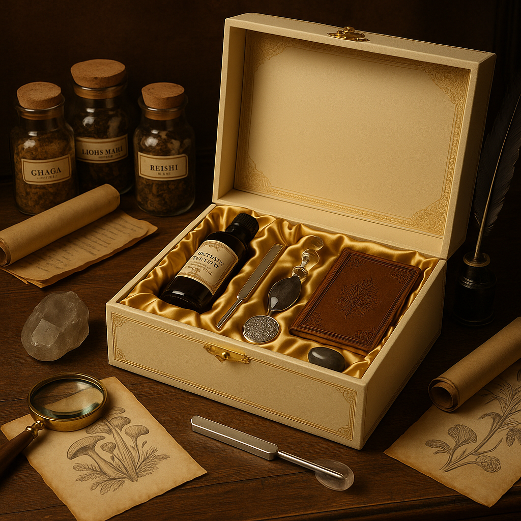 A parchment scroll with gold-edged wisdom chronicling the year’s blends, teachings, and ceremonial themes. Designed to be reread across time.