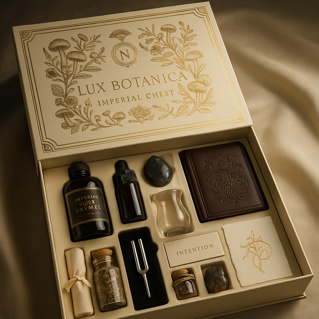 Includes a printed body map and three curated herb sachets (Reishi, Tulsi, Lavender/Rose) to guide anointing and energetic recalibration.