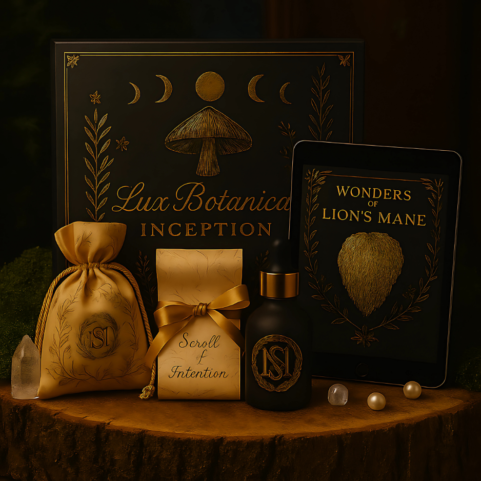 The Lux Botanica Inception follows a six-week ceremonial cadence, echoing the cycles of steeping, integration, and renewal. Each edition is curated around a featured medicinal mushroom or therapeutic botanical blend. While the foundational elements remain constant, the tincture, growth kit, and complementary offerings shift with the theme of the cycle. Every item is chosen with intention, upholding the House’s promise of purity, potency, and refinement.